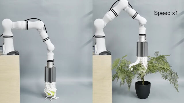 触手が獲物を絡め取る動きを再現した、細い触手の集合体ロボットグリッパー