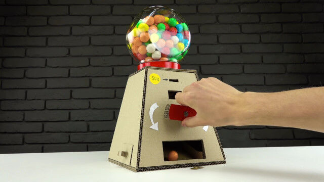 - 硬貨を入れるとガムボールが出てくる、ダンボールで作った自動販売機 $ArticleTagsLoop$>