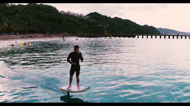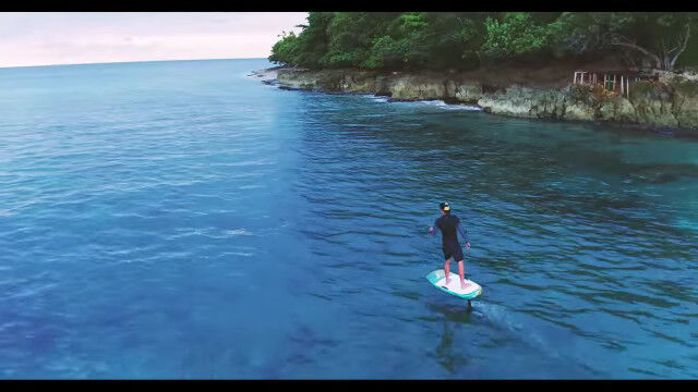 水中翼付きのボードで座るように滑り飛ぶエア・チェアーの映像