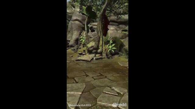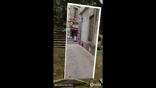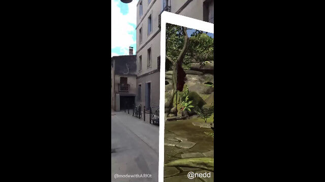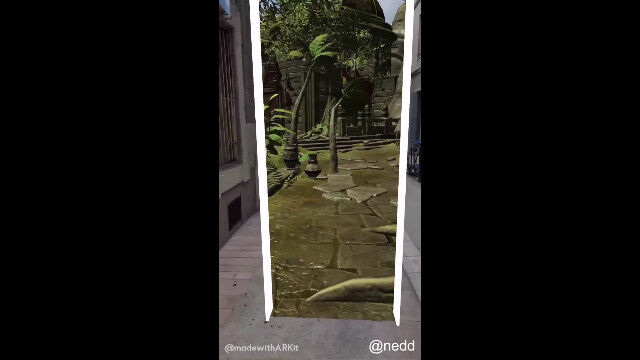 路地裏の空間を一部分切り取ったかのように見えるのは、AppleのAR制作プラットフォーム、ARKitで作られた別世界への扉。