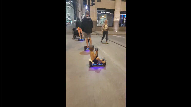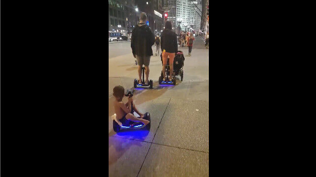 アメリカ、シカゴの街中で目撃された、セグウェイに乗って移動する家族。