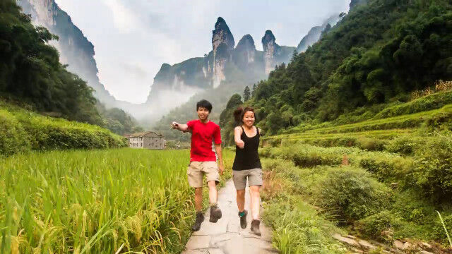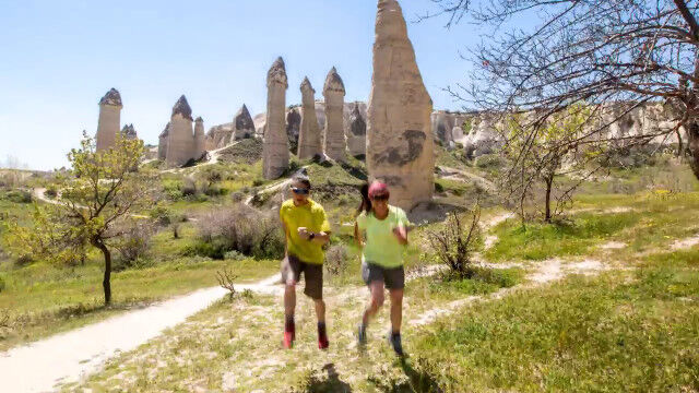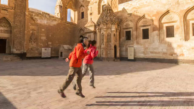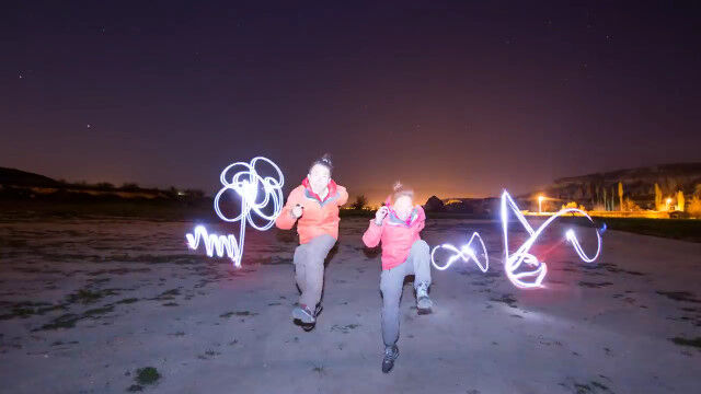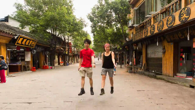 旅した2人がジャンプした瞬間をつなぎ合わせ、まるで浮遊しながら移動しているように見せるコマ撮りが面白い。