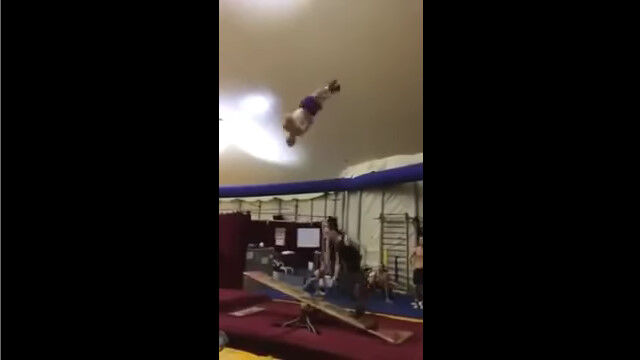 シーソーを使って宙返りし続ける、世界記録達成の瞬間