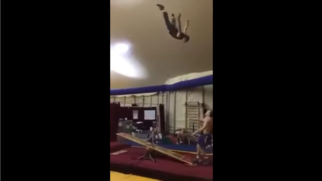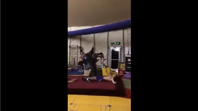 これは練習風景であるようだけど、その場でのひねりを加えた宙返りも、場所を入れ替える宙返りも凄い。