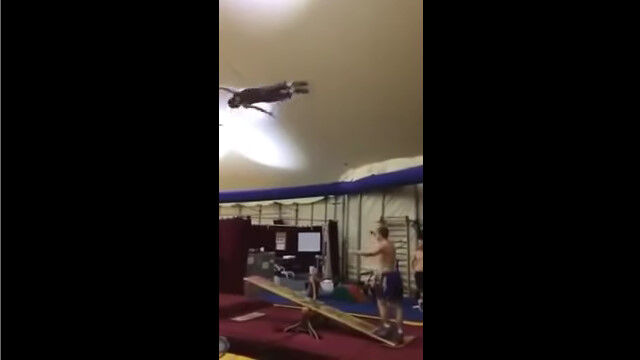 トランポリンのようにシーソーで飛び跳ねる男たちの凄技アクロバット映像