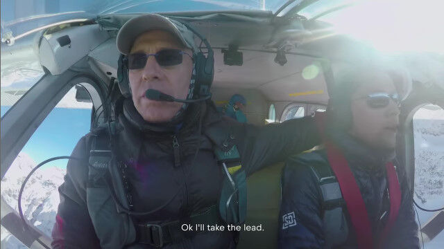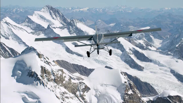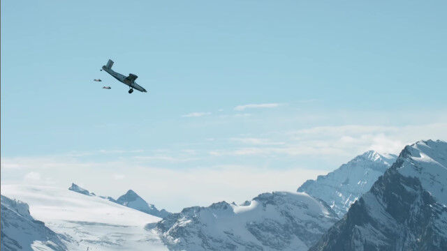 近くを飛行する軽飛行機に近づき、開け放たれた横のドアから空中で乗り移る、命がけの離れ業がスゴい。