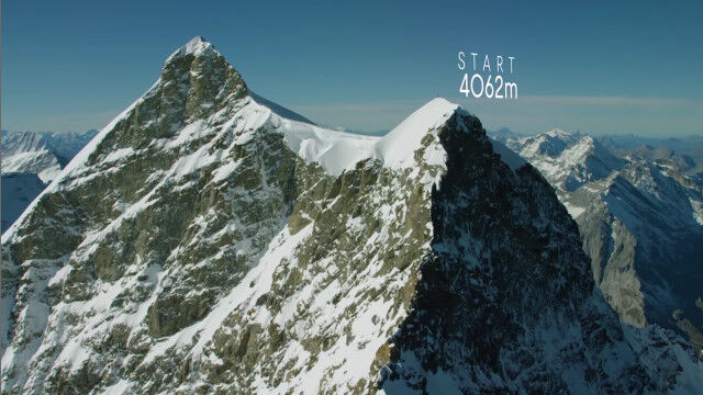 スイス、アルプス山脈の山、ユングフラウの山頂4,062メートル地点から飛び降り、ウィングスーツで滑空。