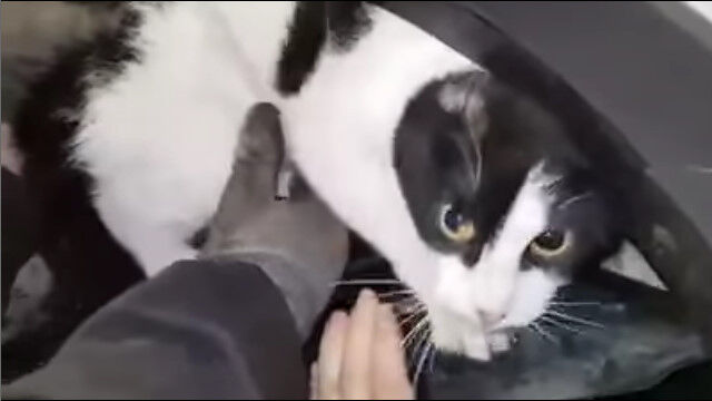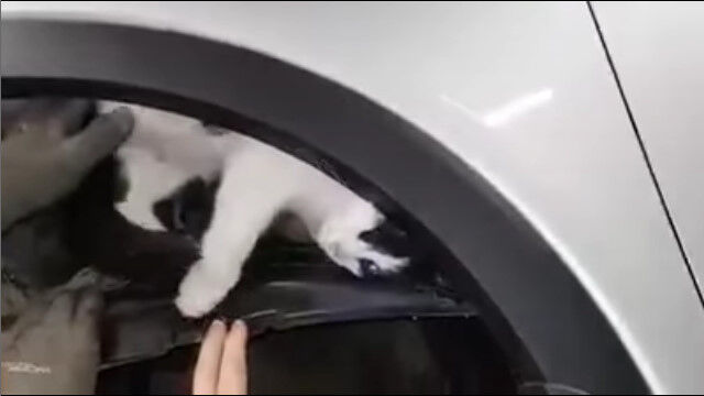 どうしたわけだか車の内部に入り込んでしまったらしい猫を助ける一部始終。