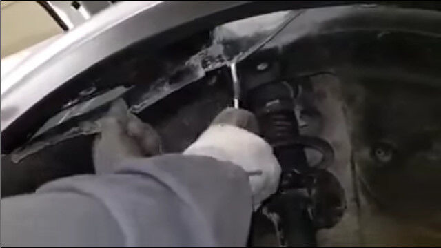 車の前輪を取り外し、タイヤに面したボディーの一部を取り外すと、中に見えるのは馴染みのあるフワフワの体。