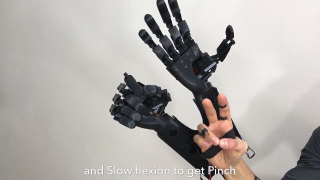 人差し指と薬指がそれぞれ枝分かれしたロボットの拳に対応していて、指を曲げると拳を握る。