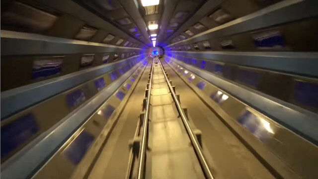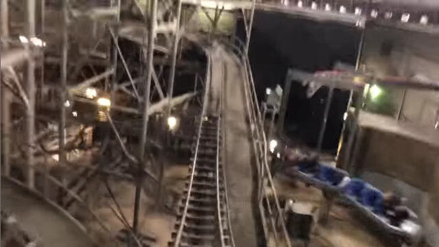 通常は暗いままのアトラクション内を、照明を点けた状態で稼働させた、なかなか新鮮な映像。