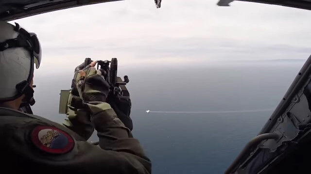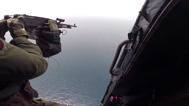 ドローンを撃ち落とそうとドアガンナーが機関銃で狙い撃つも、小さなドローンにはなかなか当たらず。