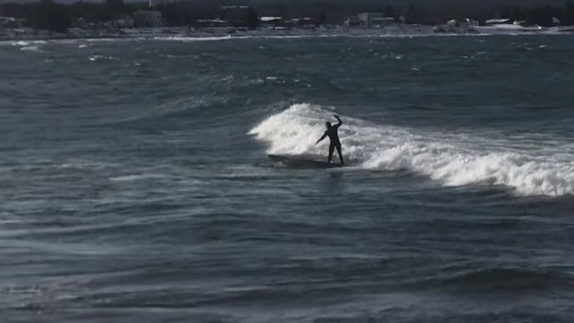 Surfing Lake Superior in sub zero winter