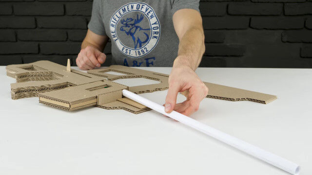 ダンボールや紙、串や輪ゴムなどを組み合わせて作った、紙の銃弾を発射できるスナイパーライフルが凄い。