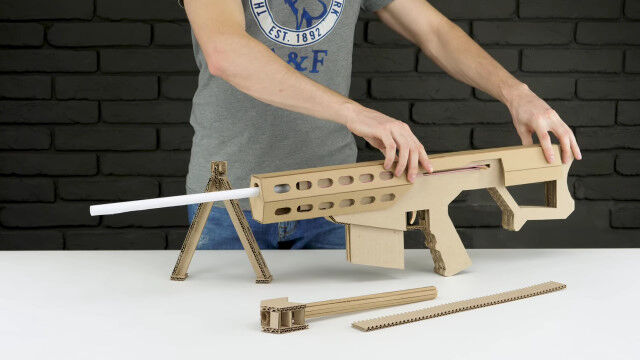 以前紹介したダンボール製グロック19とHK MP5もスゴかったけど、スナイパーライフルもなかなかスゴい。