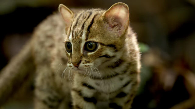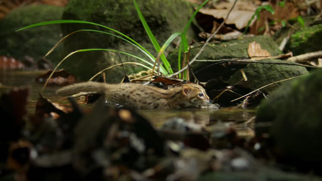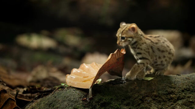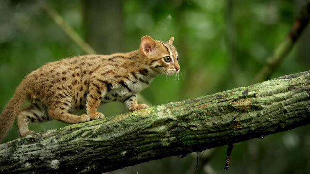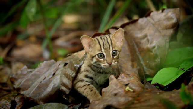 ネコ科の中で最も小さな種、サビイロネコが、スリランカの森の中を散策する様子を撮影した映像。
