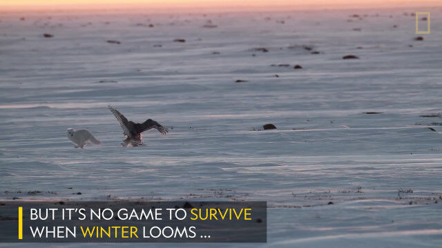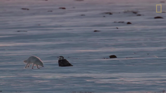 シロフクロウとホッキョクギツネは、どちらもレミングを主なエサとする雪原の捕食者。