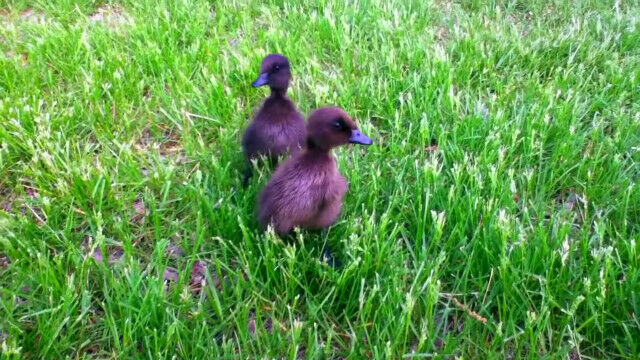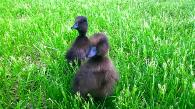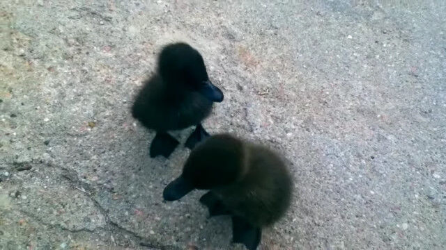 母ガモとはぐれた子ガモの群れが、親認定してついてきた!という嬉しい状況