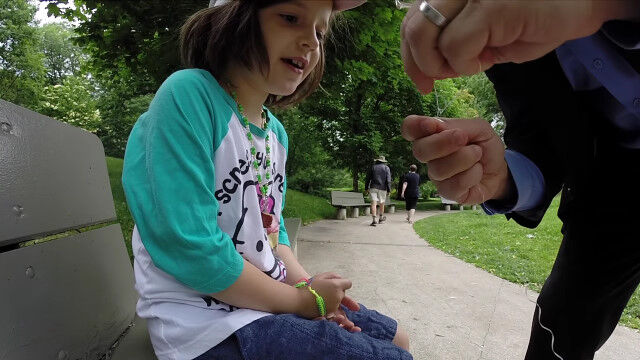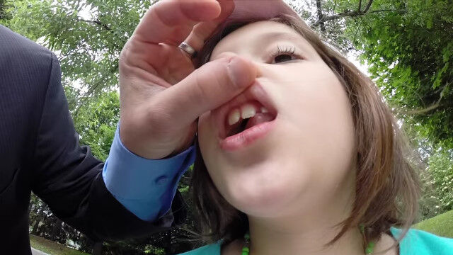 今にも抜けそうな少女の歯を、野生のリスを利用して抜いてみた