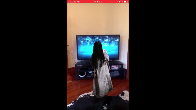 AppleのAR制作プラットフォーム、ARKitで貞子がテレビからホントに出てくるかのような映像を作製。娘と一緒に見てみたパパ。