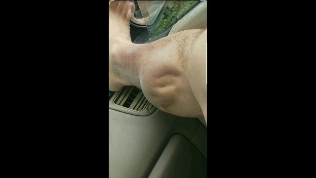 右足のふくらはぎにこむら返りを起こしてしまった男性が撮影した映像。