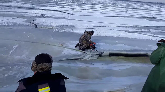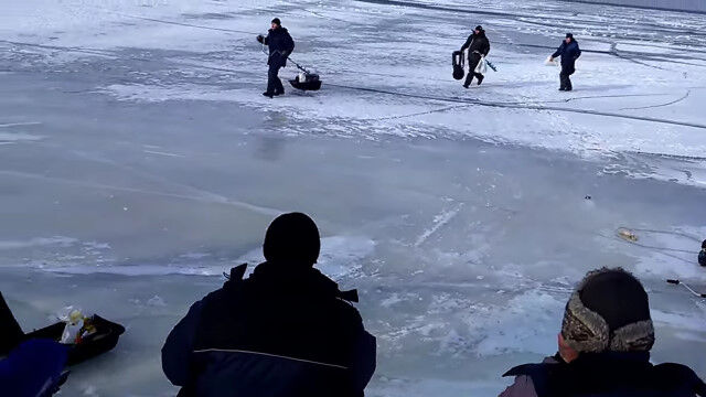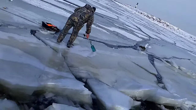 「危ない!割れるぞ!」ロシアで氷穴釣りを楽しんでいた人々が、割れる氷に逃げ出す様子がちょっと映画っぽい