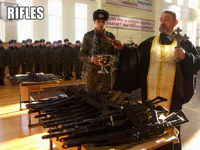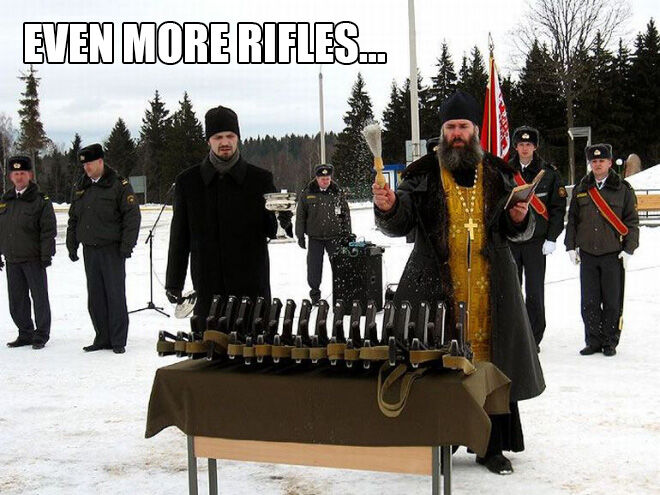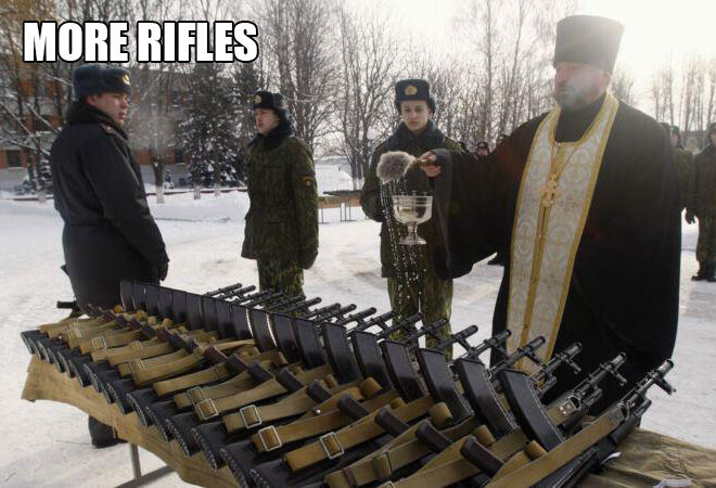 軍事兵器に神の祝福を与える、正教会の司祭という皮肉