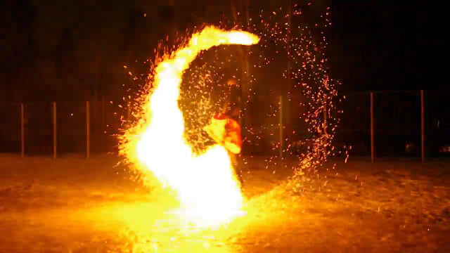 通常はオイルを染み込ませた球体に火を付けて振り回すけれど、彼の火球は振り回す勢いや衝撃によって火花が飛び散る特殊なもの。