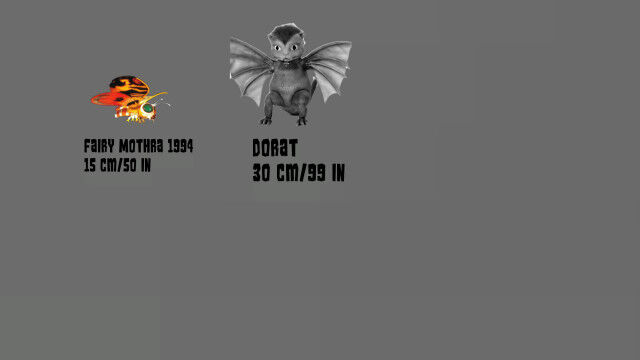 1994年の映画「ゴジラvsスペースゴジラ」に登場するフェアリーモスラから、1991年の映画「ゴジラvsキングギドラ」キングギドラまで、平成日本の特撮映画に登場する怪獣たちを小さい順に並べて比較したスケールモデル映像。