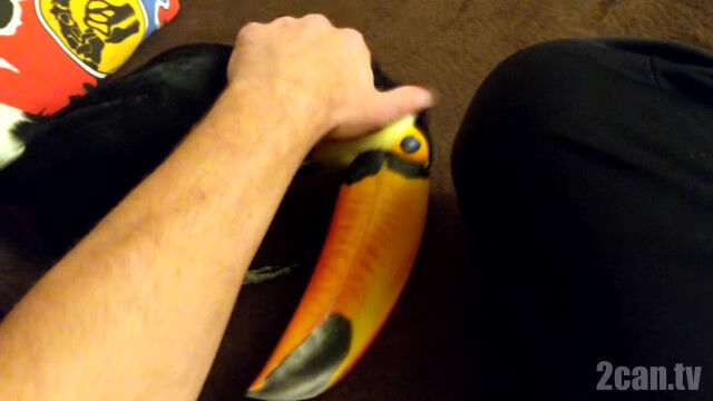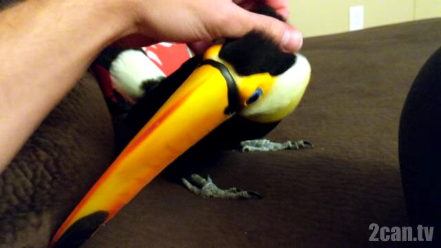 体に比べて大きなクチバシが特徴的なオニオオハシが、飼い主さんにナデナデされまくり。