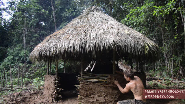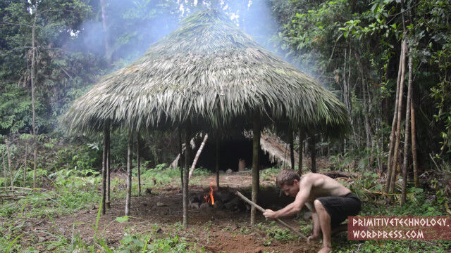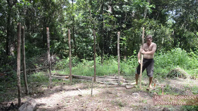 原始生活お兄さん、雨の日でも安心な作業小屋を建てる