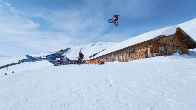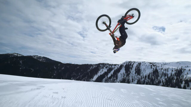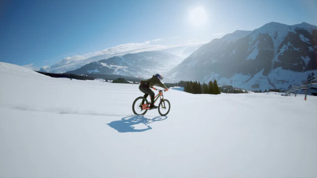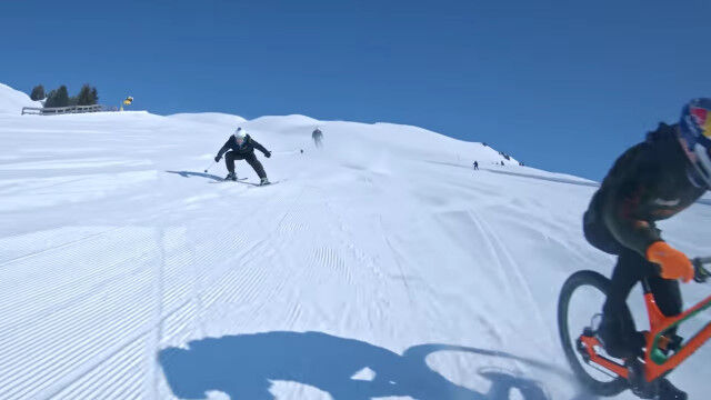 マウンテンバイクライダー、ファビオ・ウィブマーがスキー場をマウンテンバイクで疾走。