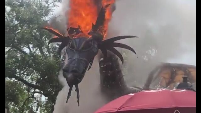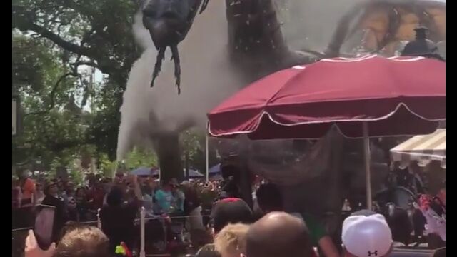 アメリカのディズニーワールド、マジックキングダムで行われていたパレード「フェスティバル・オブ・ファンタジー」にて、大きなフロートのドラゴン頭部が炎上。