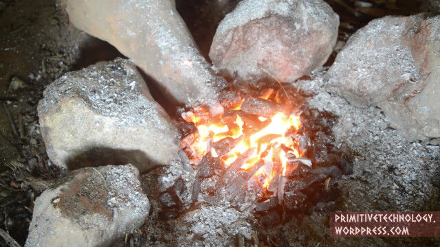 森で原始生活を営むお兄さんによる、カタツムリの殻からの石灰モルタル作り