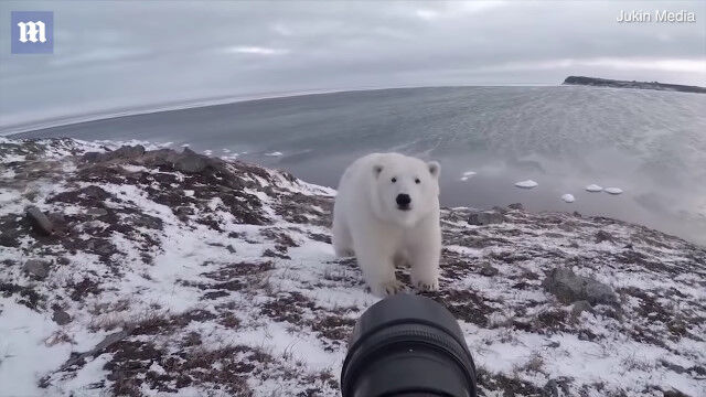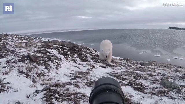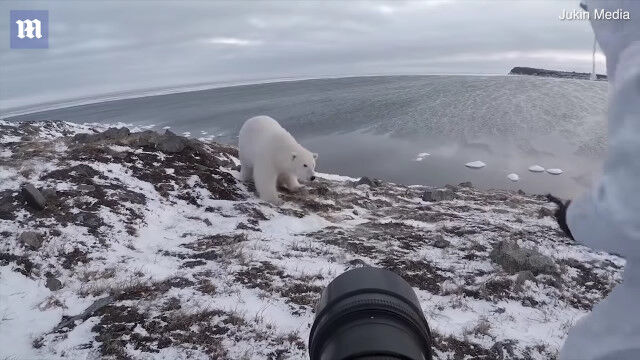 地上最大の肉食獣を前にしても恐れることなく撮影し、ホッキョクグマが近づきすぎたら適当にあしらう度胸が凄い。