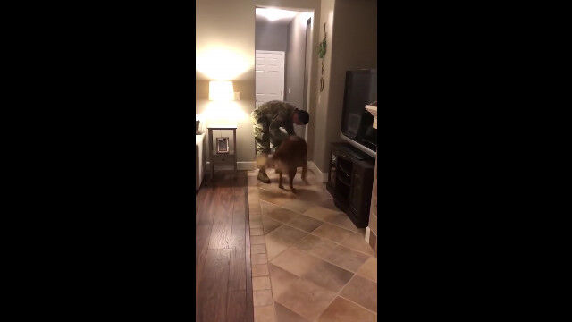米陸軍の訓練で9ヶ月家を留守にしていたケヴィンさんの登場に、ゼファーくんは興奮が抑えられなかった様子。