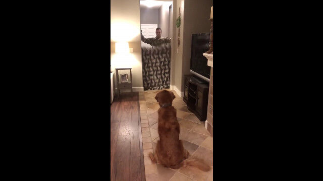 4歳のゴールデンレトリバー、ゼファーくんの前で、飼い主一家のジェイコブくんが一瞬で消えたかと思ったら、代わりに現れたのは兄のケヴィンさん。