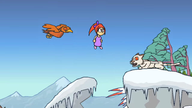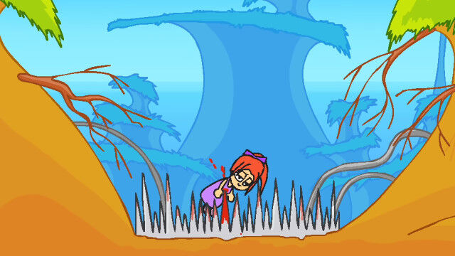 同じく吸い込まれたはずの彼氏を救うため、凶悪な敵と即死トラップだらけのステージをひたすら進むアニメーション。