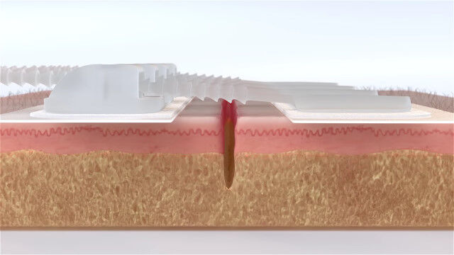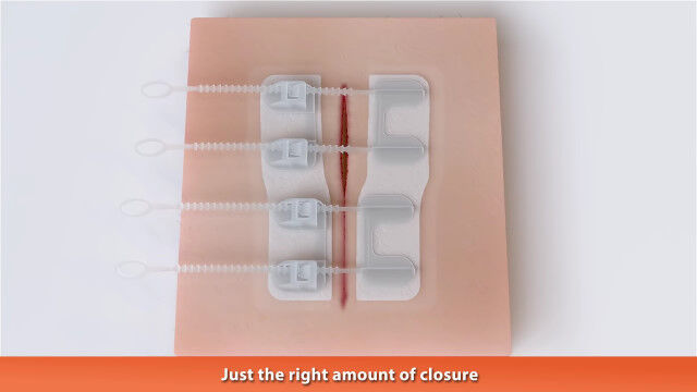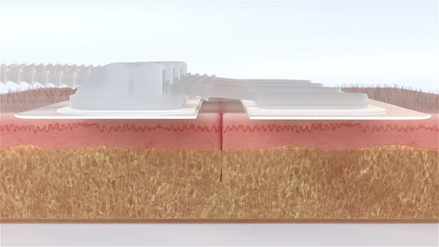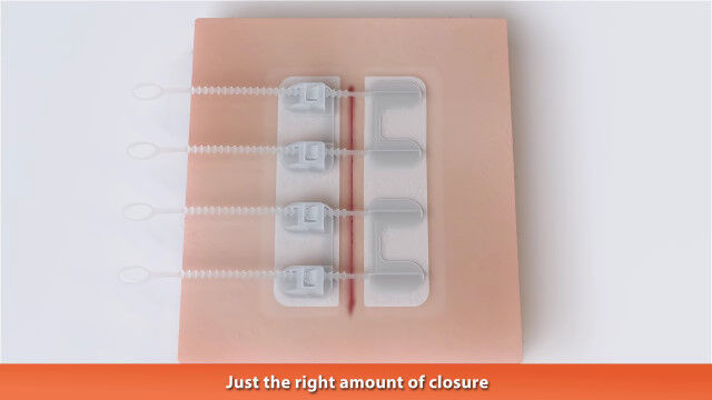 傷口の左右にシールを張り、シール同士の幅を狭めるだけなので、特別な知識がなくても使用可能。