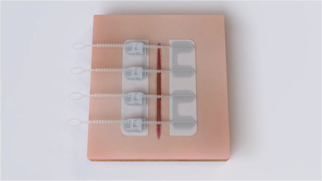 針と糸で縫い合わせることなく、開いた傷口を適度に塞ぐ医療器具、ジップスティッチ。