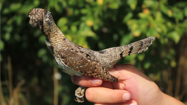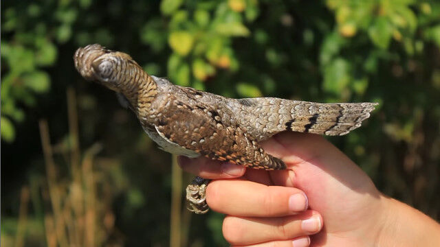 周囲をくまなく警戒できるように、首を恐ろしく柔軟に曲げられるように進化したキツツキ科の鳥、アリスイ。
