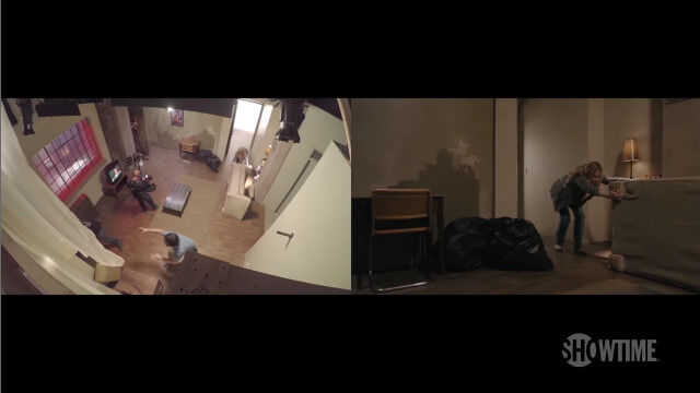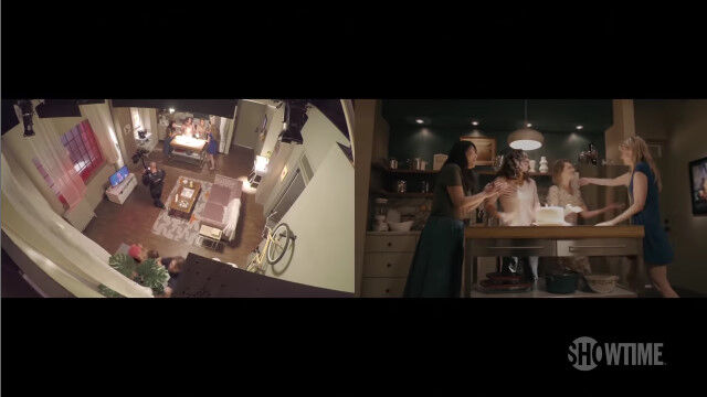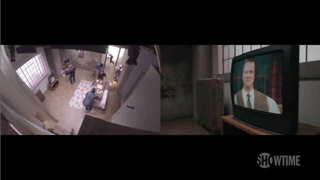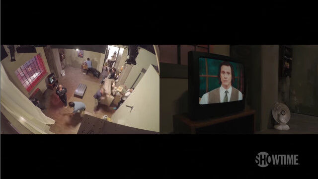 ジム・キャリー主演(テレビの中の人)の米ドラマ、「Kidding」の長回しシーンを撮影している現場と、完成後の映像とを比較再生した映像が面白い。