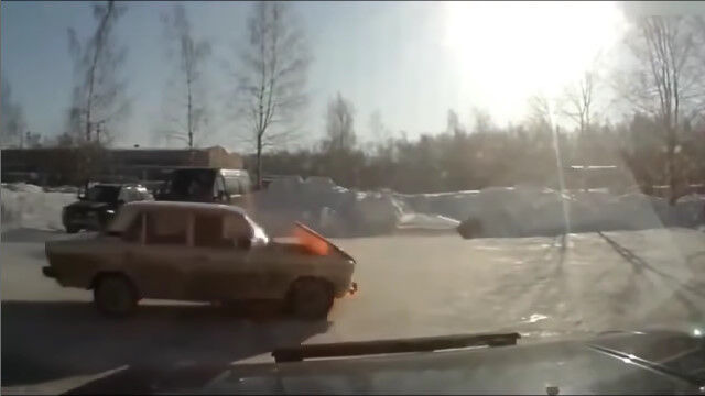 給油中、手元をライターで照らして炎上。ロシアのガソリンスタンドで車載カメラが撮影