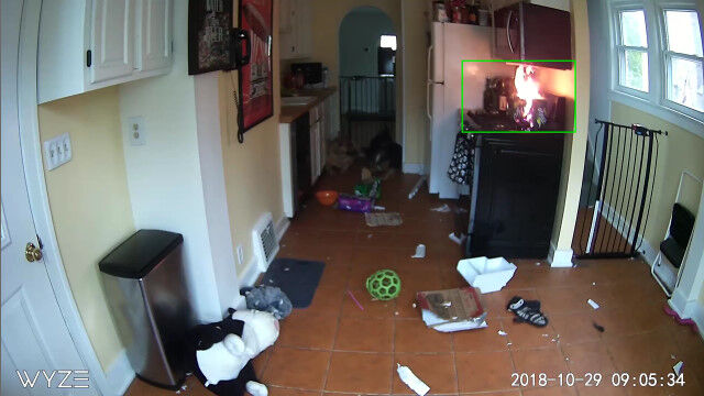 うち1匹がガスコンロのスイッチをいじり、点火に成功してしまったため、コンロ上の炭酸飲料の箱に引火。