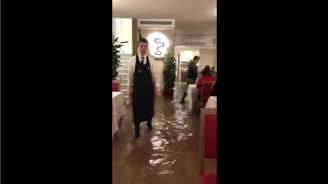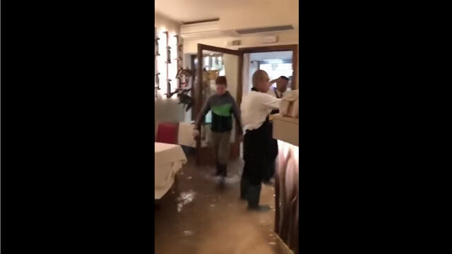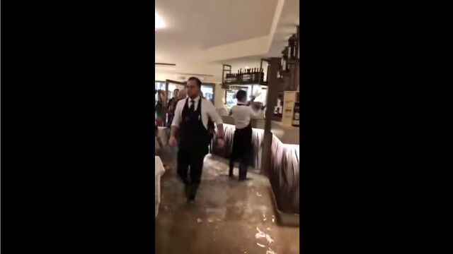 このレストランも店内の1階部分が全て水浸しになってしまったけれど、営業は通常通りに行われており、お客さんたちも普通に食事を楽しんでいる模様。