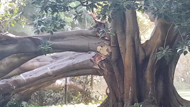 オーストラリア、モートン湾近くの大きなイチジクの木の枝が、自重に耐えかねてへし折れる瞬間を撮影した映像。
