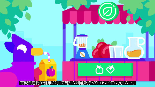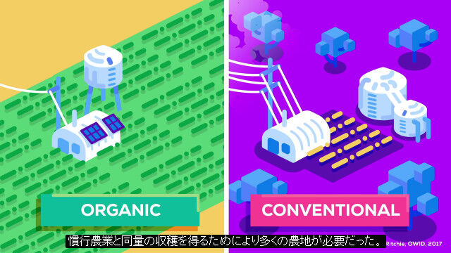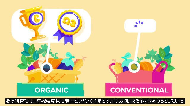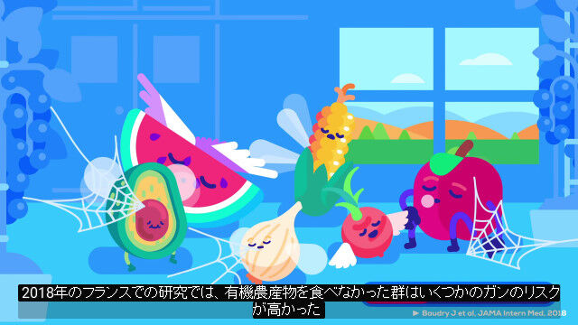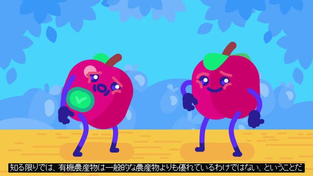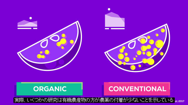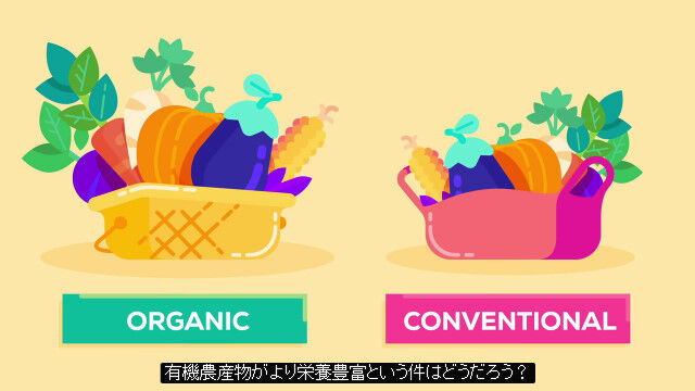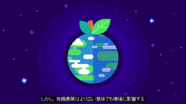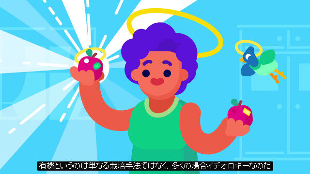 オーガニック食品の定義から、さまざまな分野への影響までを考慮して、論理的に解説した映像が面白い。