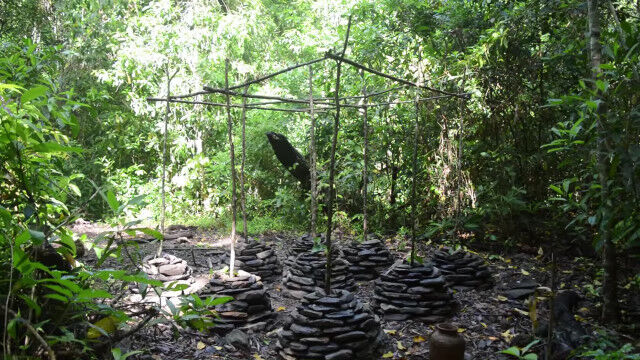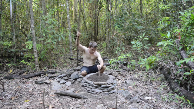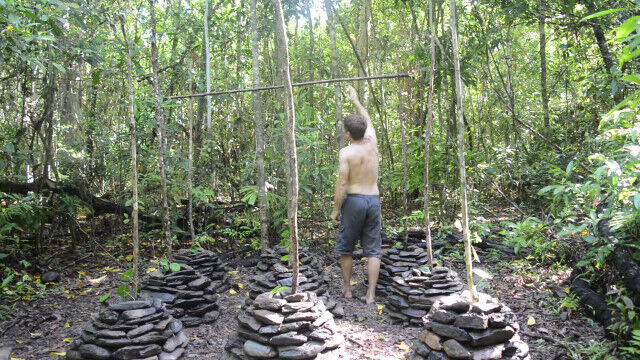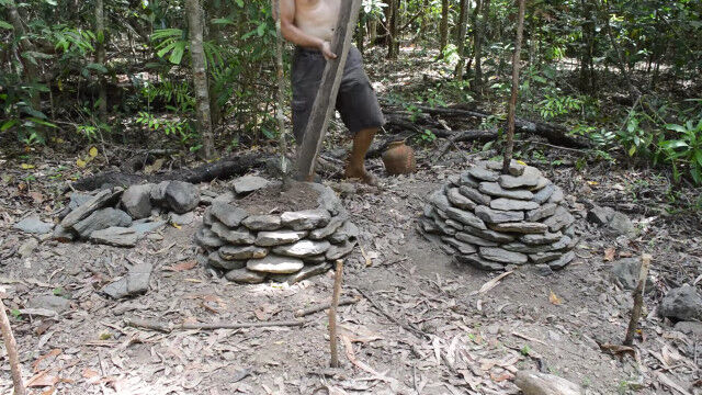 趣味として原始生活を営み、工具や土器、窯に瓦屋根の家まで作り上げてしまうお兄さんが、以前作ったヤムイモ畑をバージョンアップ。