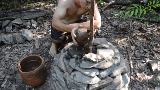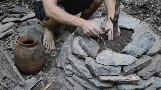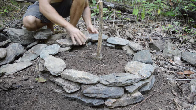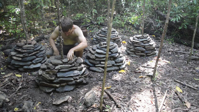 原始生活お兄さん、泥を固めたブロックを大量生産し、新しい窯を作る