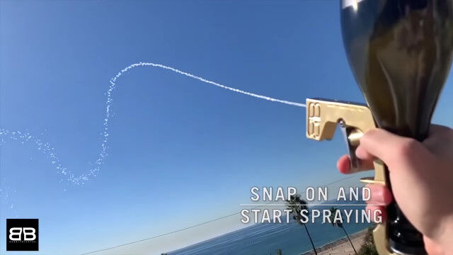シャンパンボトルの上部に装着し、ひっくり返して持てばシャンパンが水鉄砲となる。